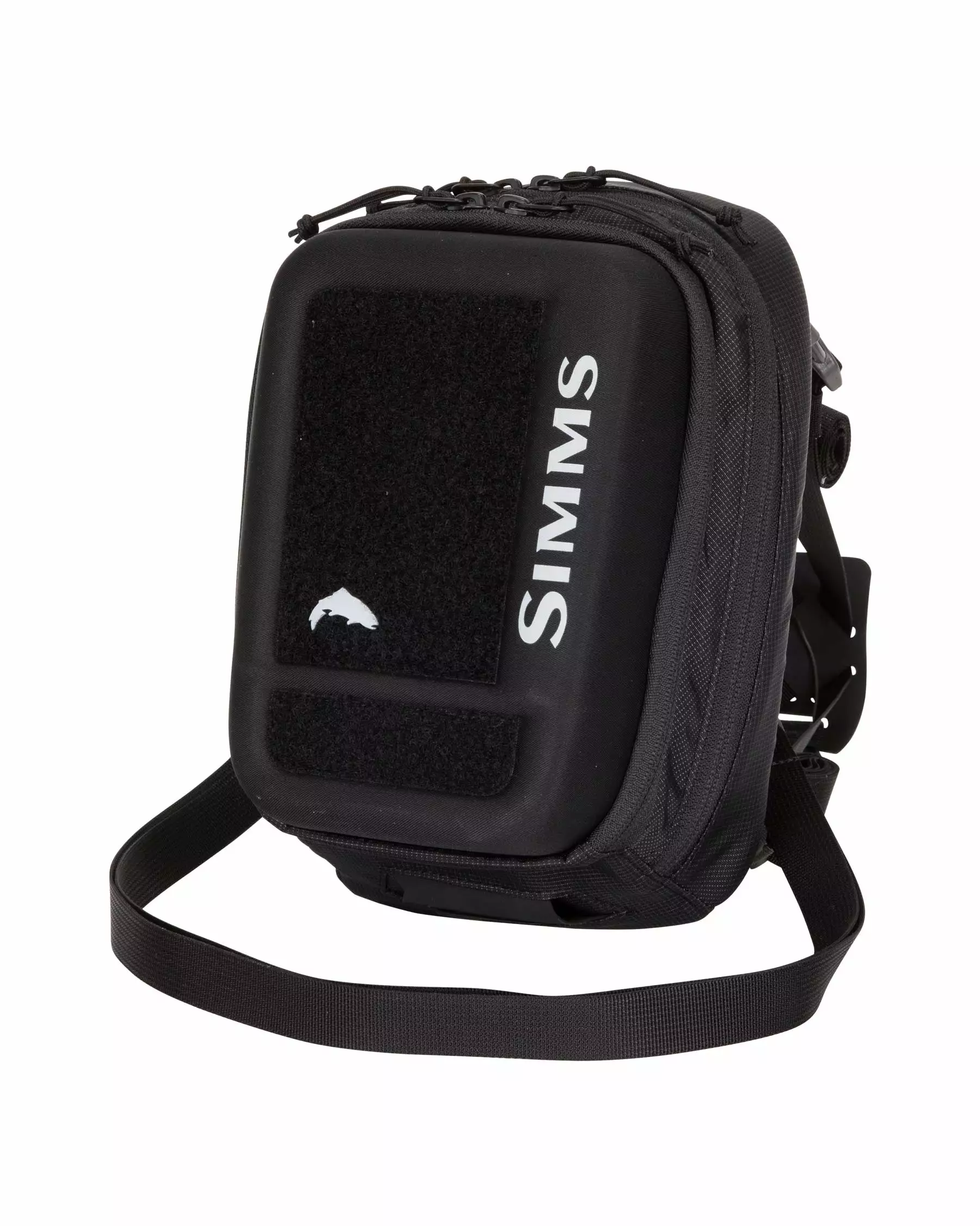 - Zippered stash pocket on back panel, large loop field on face for fly drying and storage